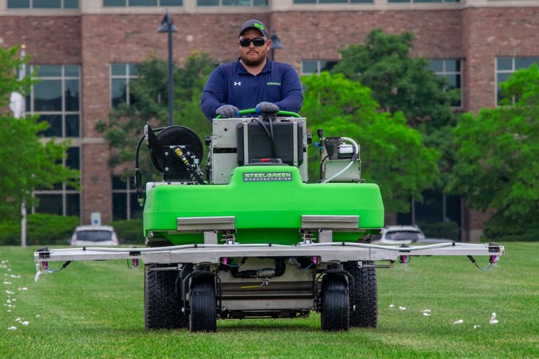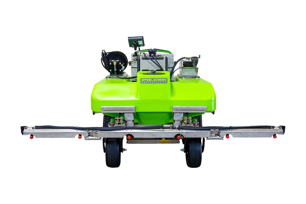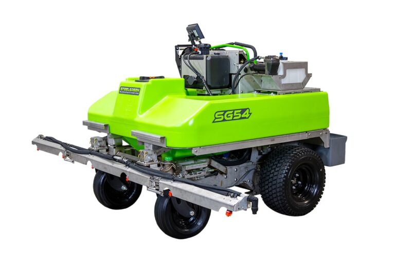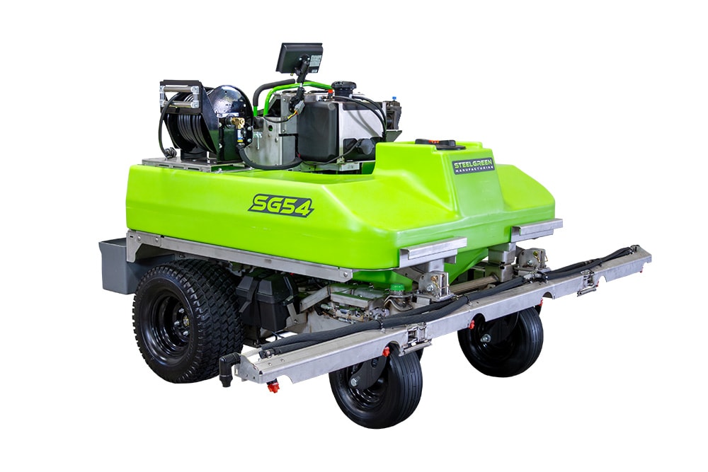 The SG54 zero-turn, stand-on sprayer builds on the efficiency of previous machines, offering a higher pump output of 40 gallons per minute and an increased liquid capacity to 100 gallons.